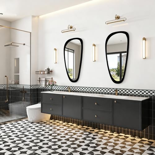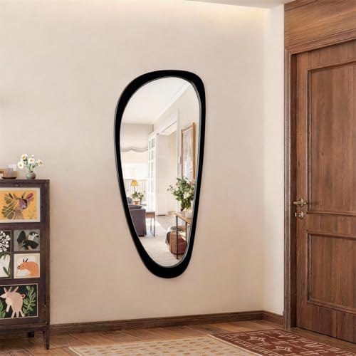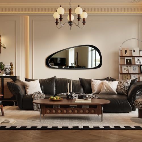 Specification: Asymmetrical Irregular Wall Mirror with Wood Frame, Decorative for Bedroom, Living Room, Entryway, Hallway, Mid Century Modern Boho Decor, Large Abstract Design 48″ H x 22″ W
