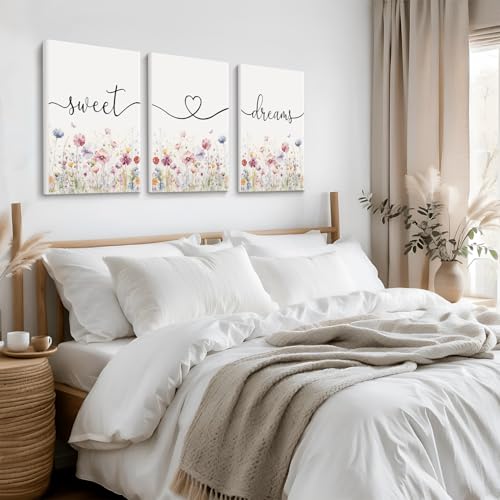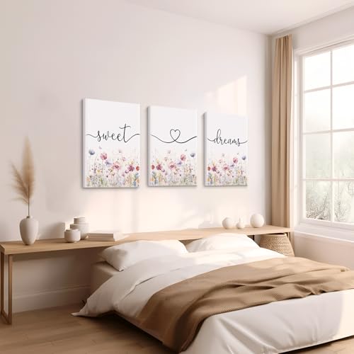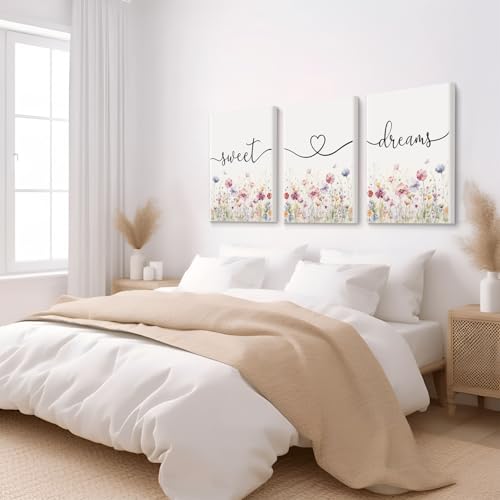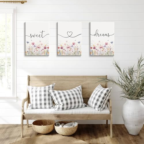 Specification: Bedroom Wall Art Decor – Set of 3 Framed Farmhouse Sweet Dreams Sign 12’’x16’’ Above Bed Wall Decor for Bedroom Decor Wall Art Wood Signs (Multicolour, 12’’x16’’)
