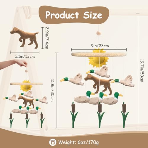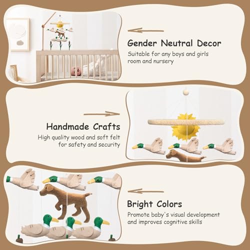 Baby Mobile for Crib Mallard Duck Baby Crib Mobile for Boys Girls Handmade Felt Dog Nursery Decor Duck Hunting Decor Infant Toddler Room Hanging for Bassinet Gender Neutral Newborn Gift