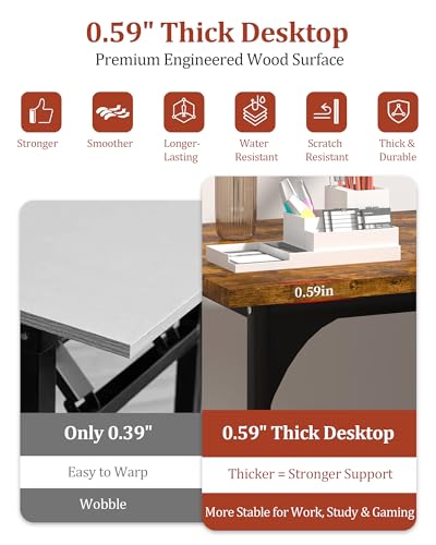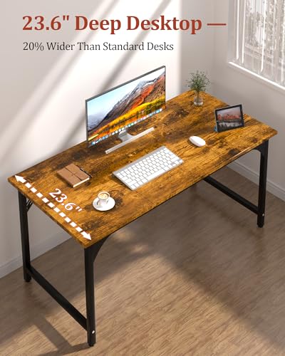 Built Strong & Extra Wide — A Computer Desk That Works For Every Task. With a 23.62″ extra-wide surface, this computer desk gives you more room than the typical 19″ office desk or gaming desk. Use it as a home office desks, pc desk, writing desk, study desk, or work desk for daily productivity. Its sturdy wooden top makes it a dependable craft table, work table, desk for bedroom, and durable wood desk for any home office setup. This is the ideal study table, computer table, and home desk.