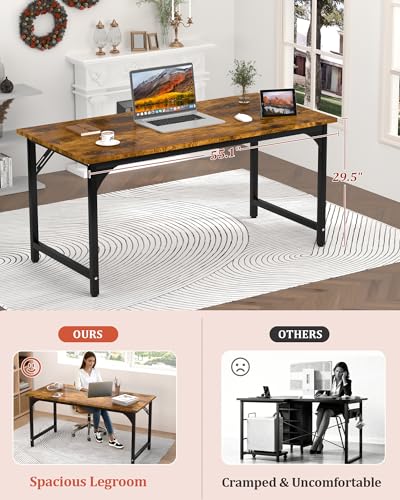 Computer Desk, 55.1″ Office Desk, Extra Wide 23.62” Deep Desktop, 0.59” Thick Heavy-Duty Home Office Desks, Office Table with Steel Frame, Modern Wood PC Desk for Bedroom Study Writing Gaming Work