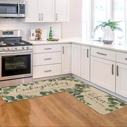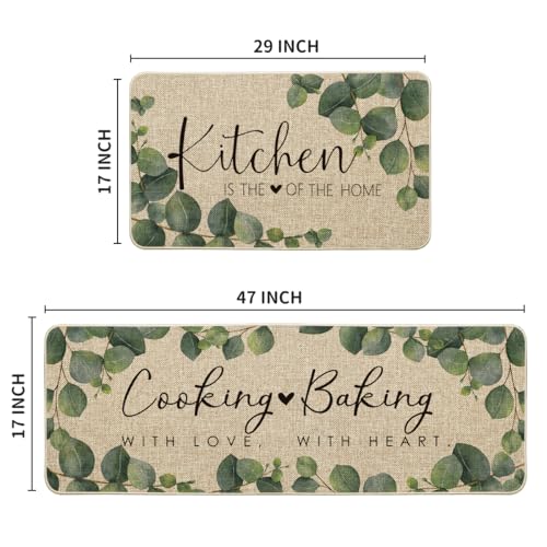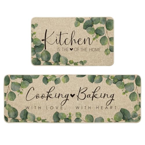 Specification: Artoid Mode Eucalyptus Leaves Mats Set of 2, Kitchen is The Heart of The Home Cooking with Love Baking with Heart Decorations for Home 17 x 29 and 17 x 47 Inch