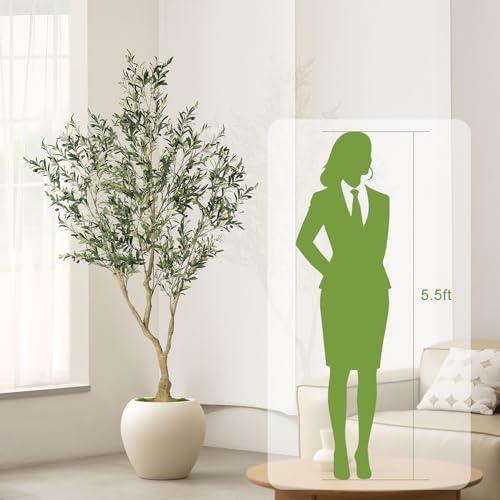 【Realistic Looking】Our lifelike olive tree will give your home a real boost. This olive trees artificial indoor has a trunk made of natural-textured trunk with lifelike leaves and fruits. The black nursery pot is made of rigid PP material with cement poured inside to prevent children and pets from knocking it over.