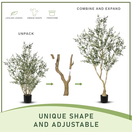 【Sturdy and Adjustable】Our artificial olive trees are supplied with strong inner metal wires. Once you have received your fake olive tree, all you need to do is splice it together, adjust and unfold the branches and leaves to create the ideal olive tree 7 feet.