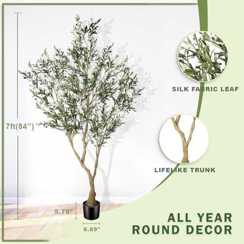 Specification: Olive Trees Artificial Indoor – Faux Olive Tree 7ft with Large Olive Branches and Lifelike Fruits – Fake Olive Tree for Modern Home Office House Living Room Decor
